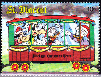Am 23.12.1988 erschien in St.Vincent eine Serie zu Weihnachten mit Walt Disney Figuren in einem Weihnachtszug.