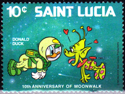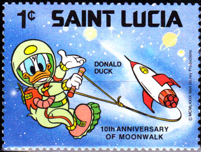 In St. Lucia erschien am 29. Mai 1980 aus Anlass "10 Jahre Mondlandung" eine Markenserie mit Walt-Disney-Comic-Figuren.