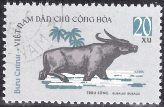 Auf einer Marke aus Vietnam ist ein weiterer Wasserbüffel (Bubalus arnee) abgebildet.