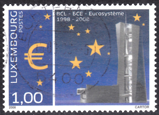 Zum Jubiläum "10 Jahre Eurosystem" gab es in Luxemburg eine Marke (MiNr 1777) mit einem Eurozeichen, Sternen und dem Eurotower in Frankfurt am Main, der Sitz der Europäischen Zentralbank ist.