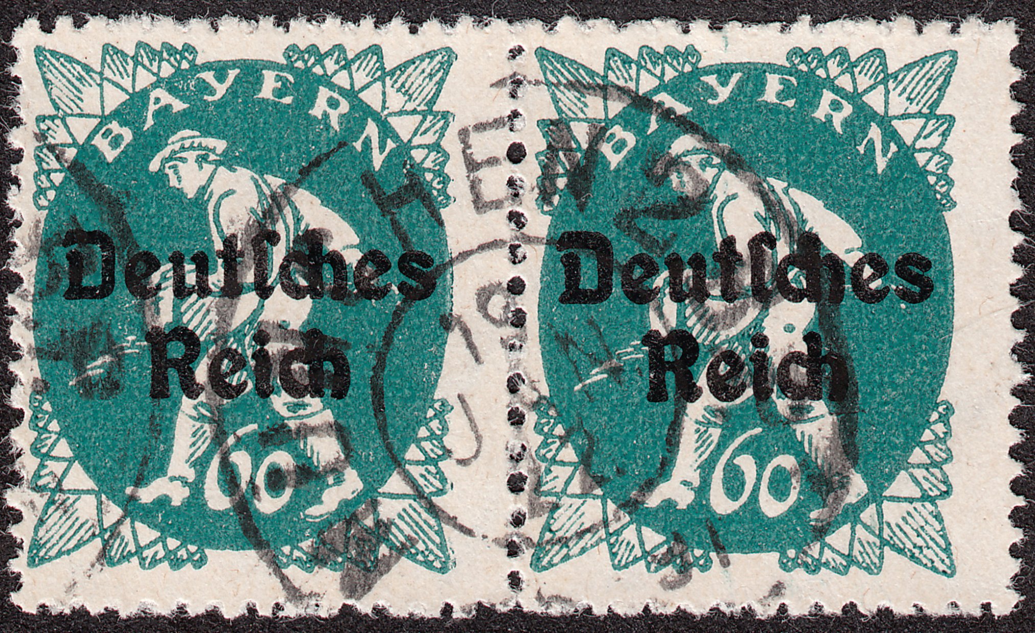 Paar der Wertstufe 60 Pfennig gestempelt am 19.01.1922 in München: