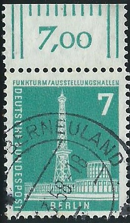 Eine gestempelte Marke zu 7 Pf vom Oberrand mit Reihenwertzähler 7,00. Das ist normalerweise die rechte obere Ecke, hier fehlt leider der senkrechte Seitenrand.