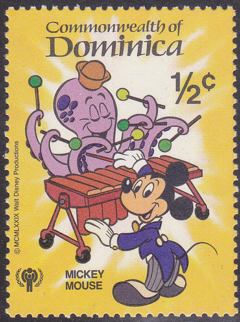 In einer Serie zum Internationalen Jahr des Kindes ist 1981 in Dominica diese Marke (MiNr 657) mit der Abbildung Micky Maus dirigiert einen Kraken am Xylophon erschienen.