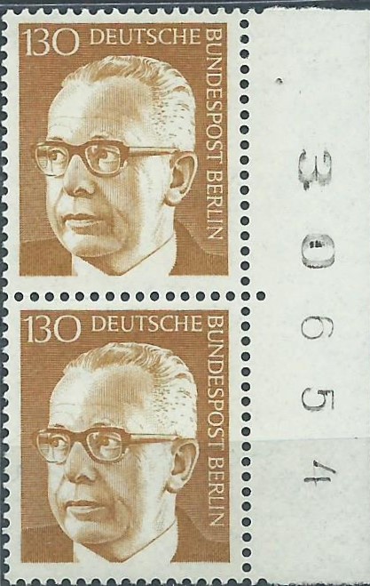 Der Wert zu 130Pf vom rechten Bogenrand als senkrechtes Paar mit Bogenzählnummer: