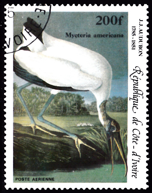 Auf einer weiteren Marke (MiNr 855) sehen wir seine Zeichnung mit einem Waldstorch (Mycteria americana).