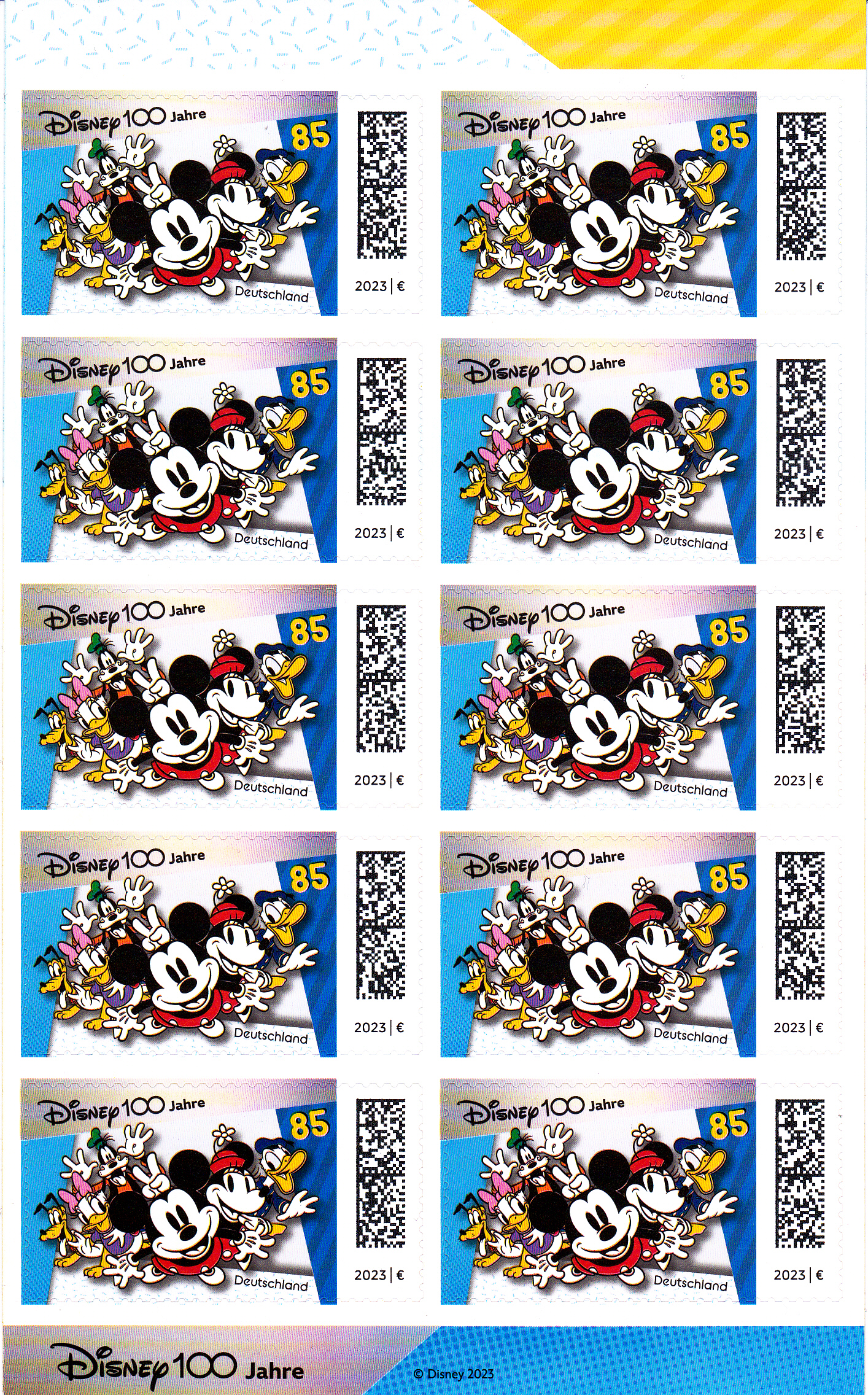 Die Marke wurde als Zehnerbigen verausgabt. Hier zeige ich einen solchen Bogen.