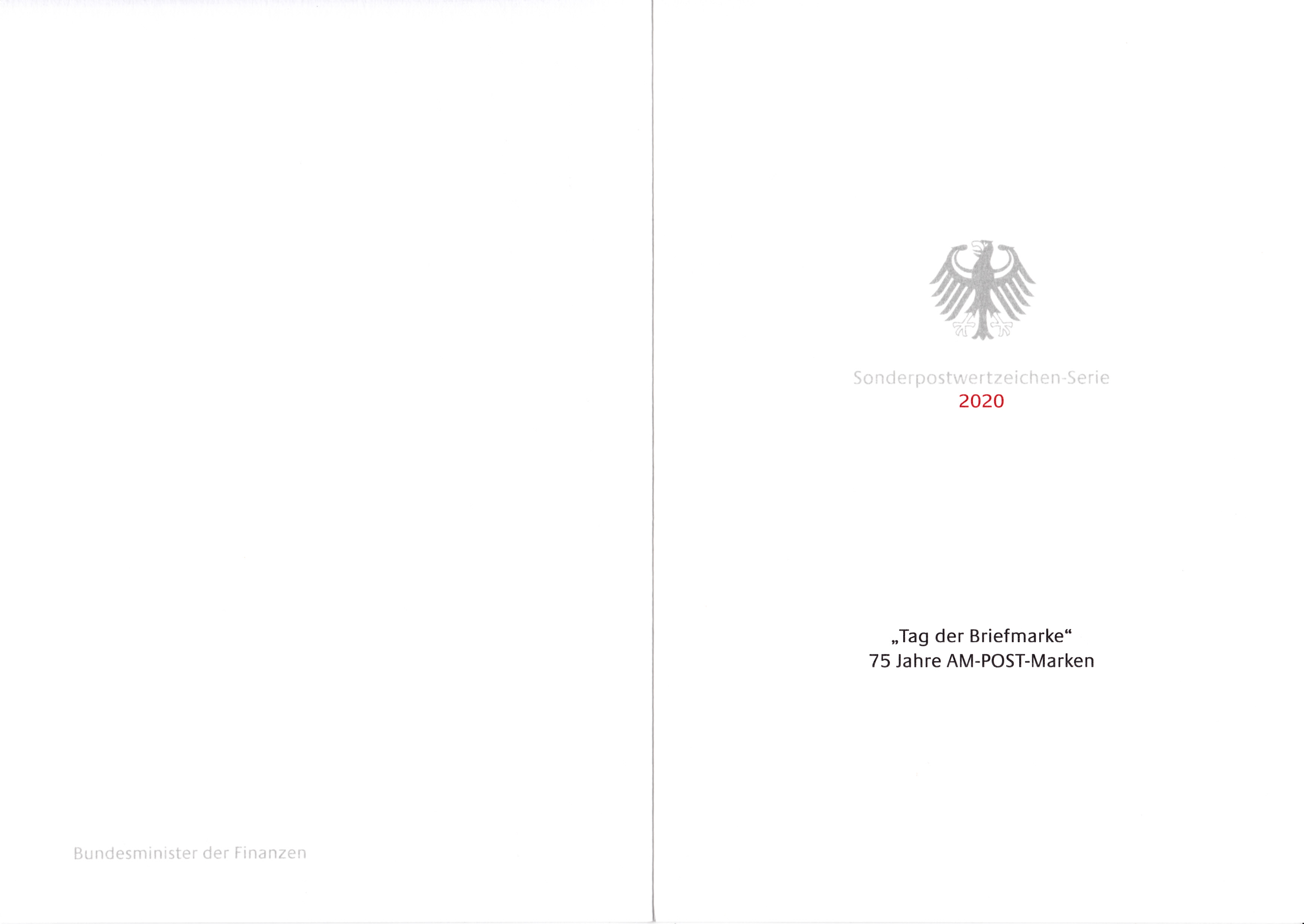 Ministerkarte des Finanzministers mit zwei Marken zum Tag der Briefmarke 2020 (MiNr 3564) und den beiden Ersttagsonderstempel Bonn und Berlin.