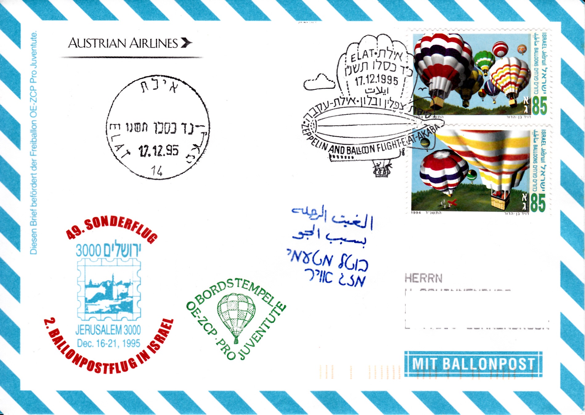 Der 49. Sonder-Ballonpostflug der Österreichischen Pro Juventute mit dem Freiballon OE-ZCP fand am 17.12.1995 in Eilat als 2. Ballonpostflug in Israel statt.
