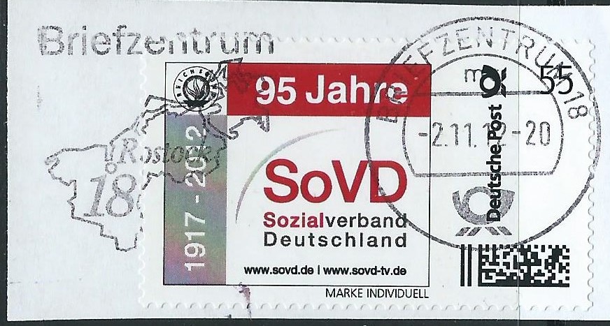 Dann mache ich mit meiner Reise durch die individuellen Marken mal ein wenig weiter. Hier eine 55 ct Marke vom Sozialverband Deutschland, gestempelt Briefzentrum 18 am 2.11.12.