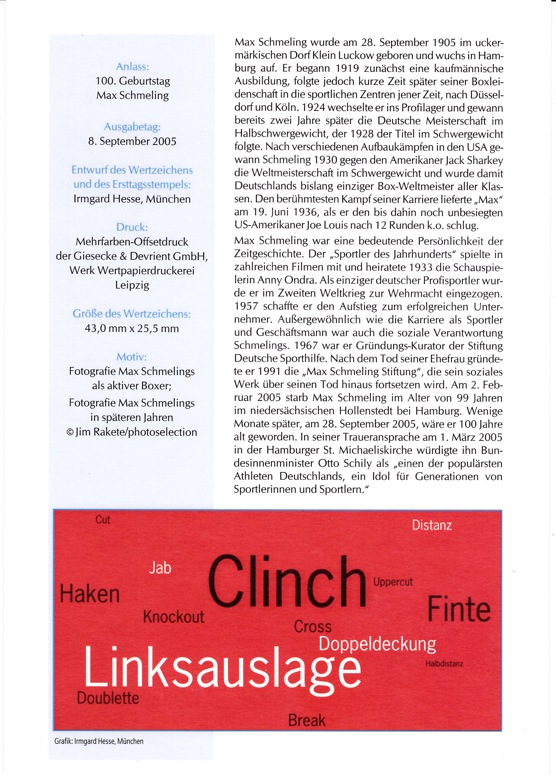 Ersttagsblatt der Deutschen Post mit der Marke zum 100. Geburtstag von Max Schmeling (MiNr 2489).