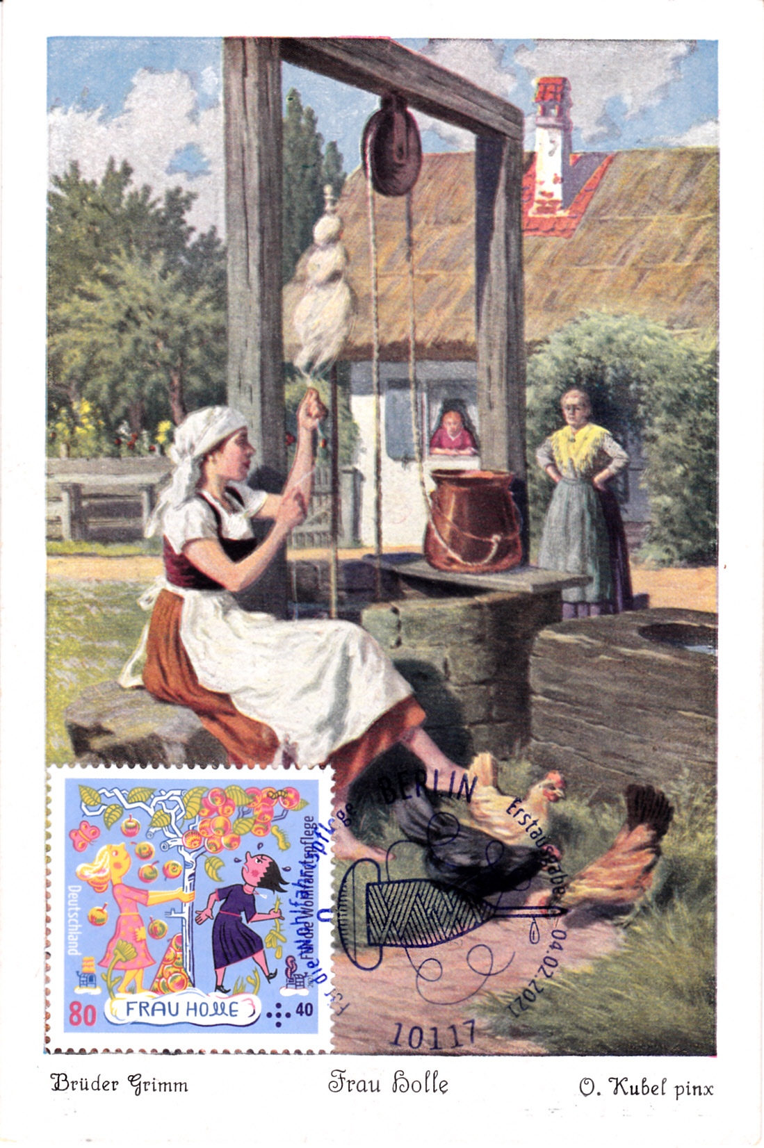 Maximumkarte mit der Marke zu 80+40 Cent aus der Serie "Frau Holle". Es wurde eine Karte der Farbenphotographischen Gesellschaft m.b.H Stuttgart aus der Serie 139 verwendet. Auf der Rückseite sind die entsprechenden Texte aus dem Märchen nachzulesen. Diese Karte hat die Nr. 3794.