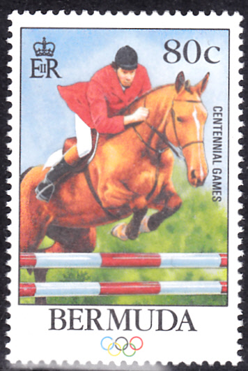 Diese Marke (MiNr 694) mit einem Springreiter beendet diese Serie aus Bermuda.