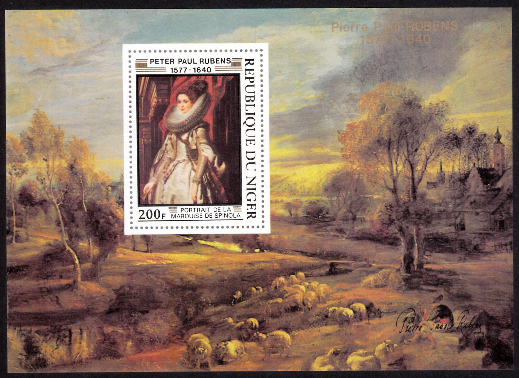 Hier zeige ich den "Block" oder "Epreuves de Luxe" mit der MiNr 608 aus dem Niger. Er zeigt als Hintergrund auch noch ein Porträt von Rubens.