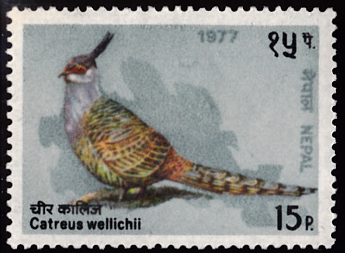 In Nepal ist diese Marke (MiNr 347) mit einem Wallich-Fasan (Catreus wallichli) erschienen.