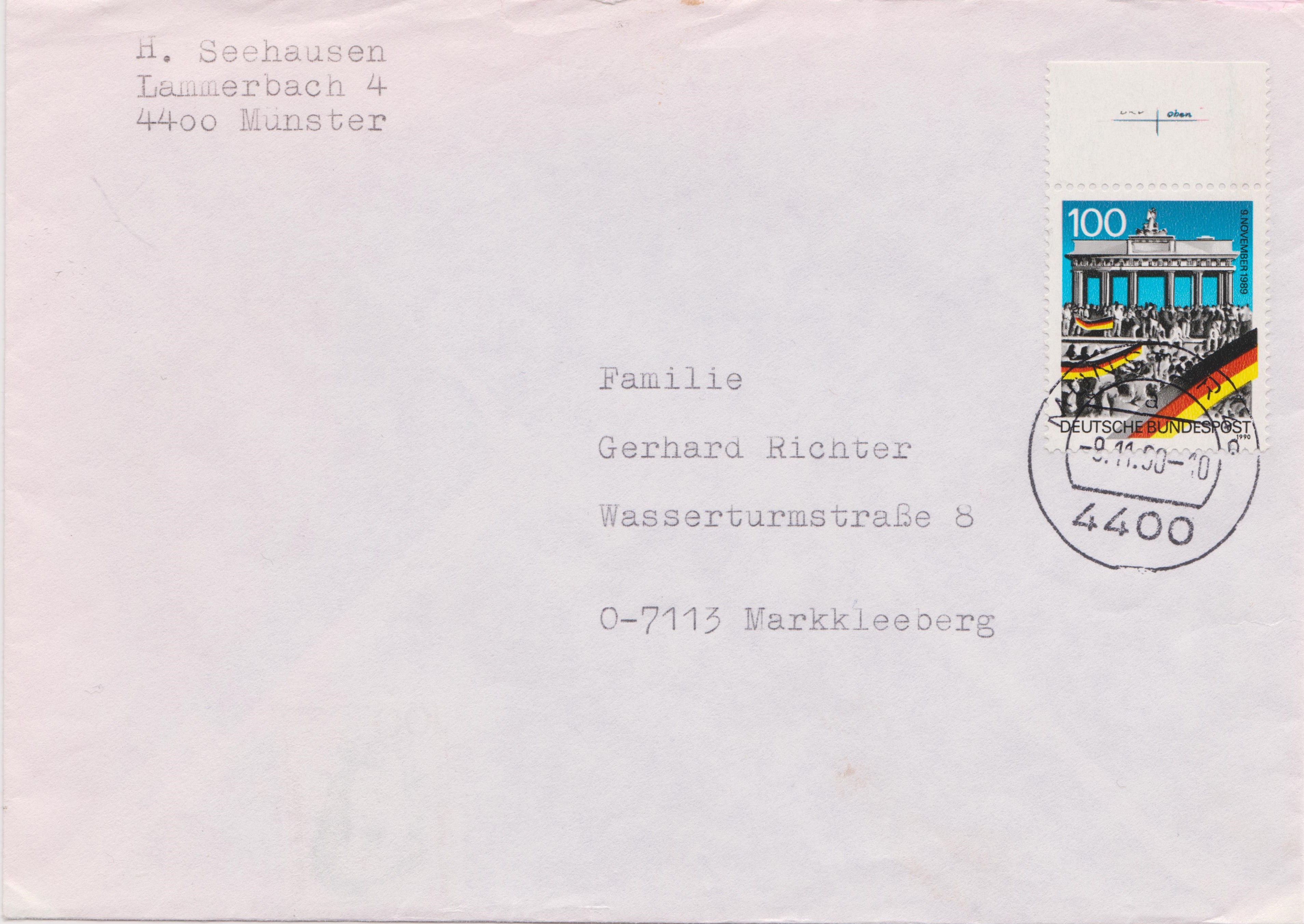 Hier eine portogerechte Einzelfrankatur der Bund MiNr. 1482 I auf Brief von Münster nach O-7113 Markkleeberg: