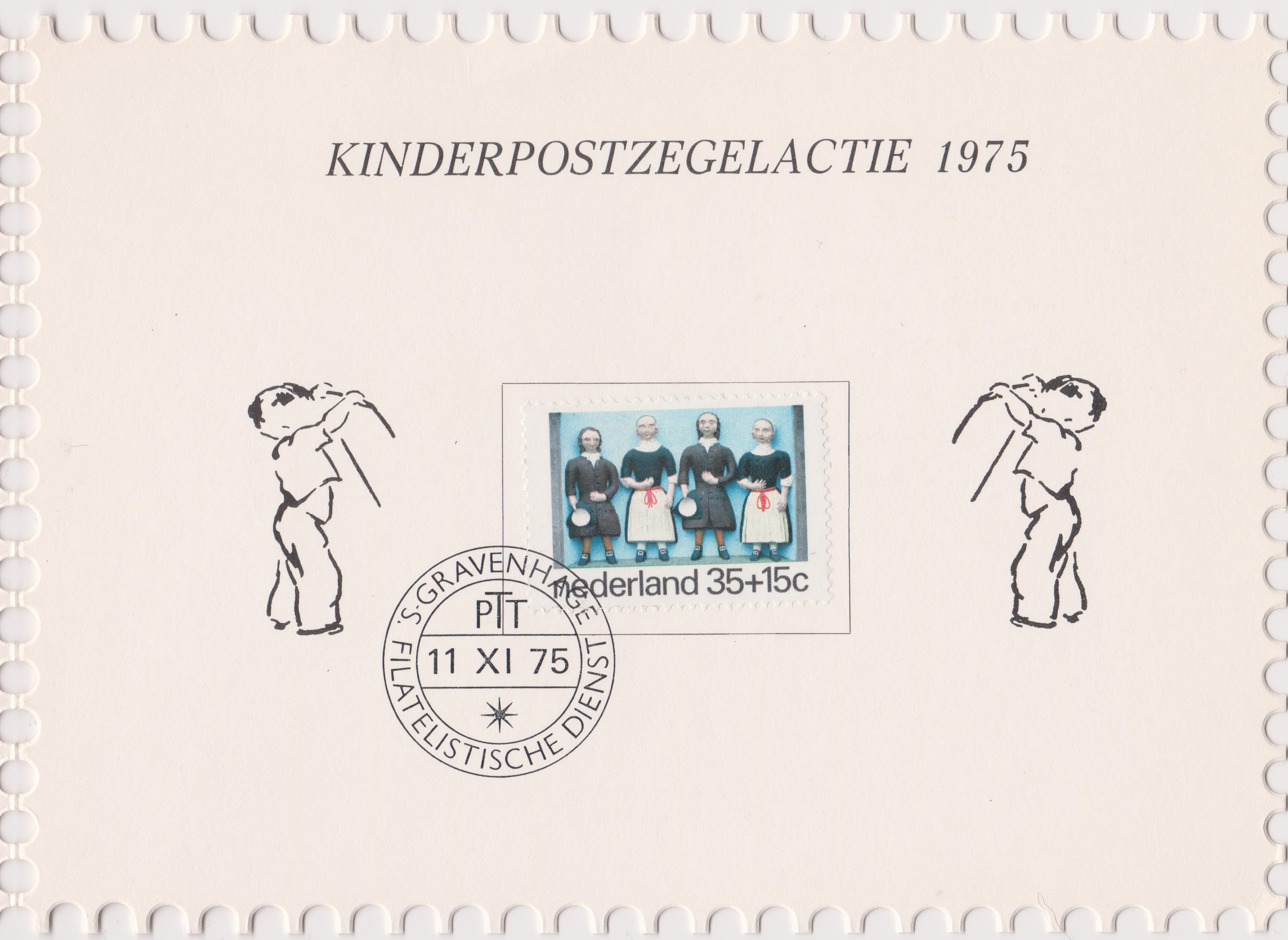 Die hier gezeigte Karte zur "Kinderpostzegelactie 1975" (= Kinderpostbriefmarkenaktion 1975) mit Niederlande MiNr. 1059, gestempelt am 11.11.1975 = Ersttag, hatte eine Auflage von 16.000 Stück und trägt die Nummer "12772":