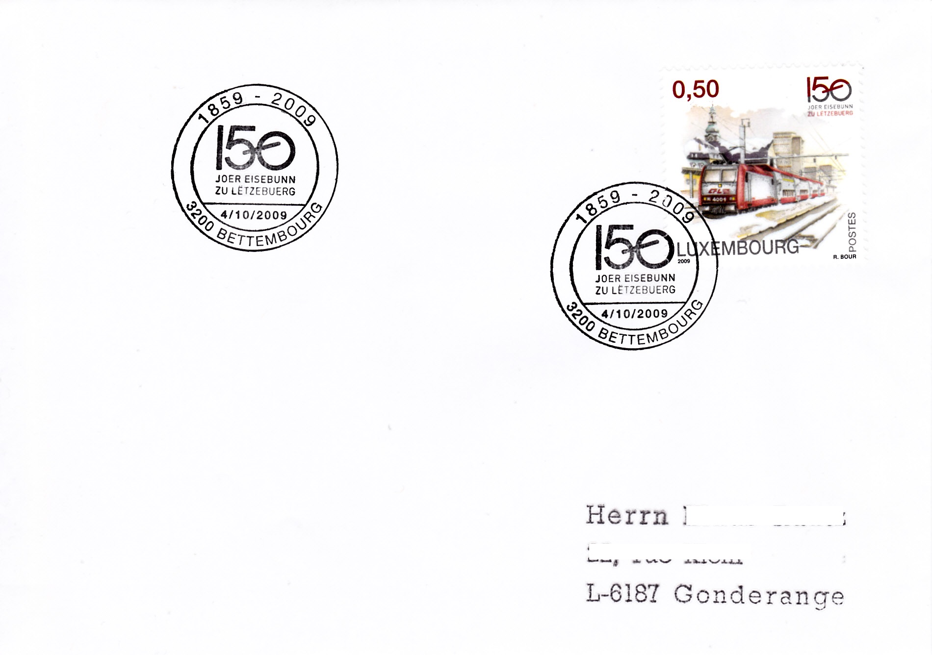 Zum Jubiläum "150 Jahre Eisenbahn in Luxemburg" erschien in Luxemburg eine Markenserie. Auf der Marke zu 0,50€ (MiNr 1838) wird ein Doppelstockpersonenzug gezeigt.