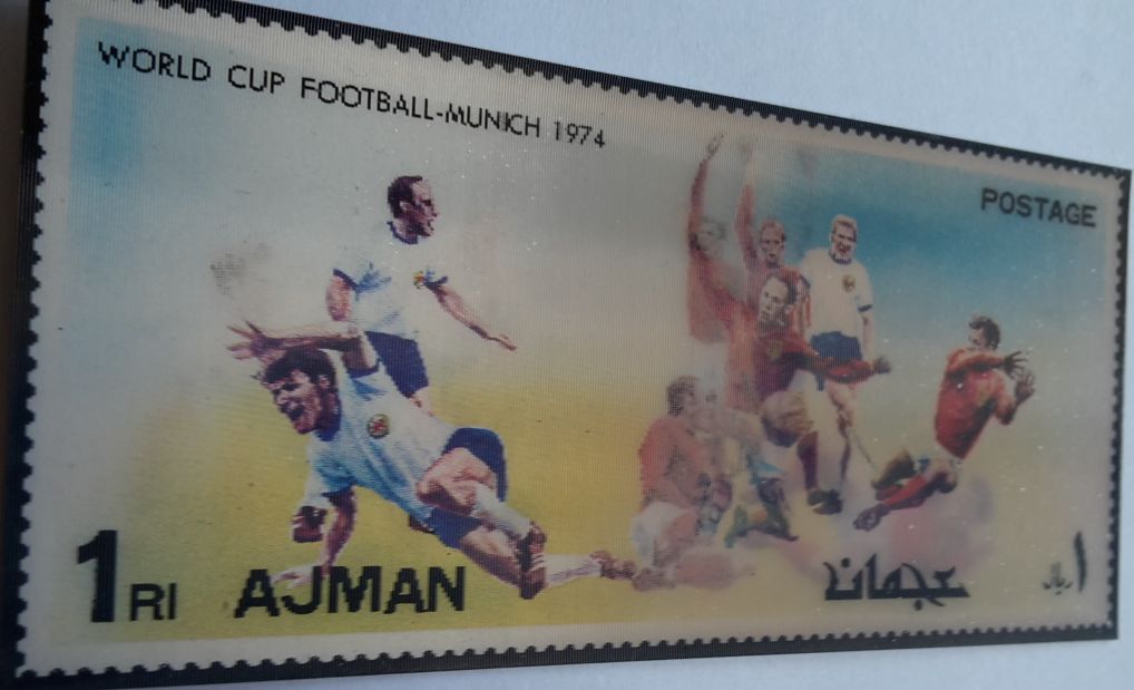 Als erstes Beispiel eine Marke zum Thema Fussball, die zwei Spielszenen zeigt.