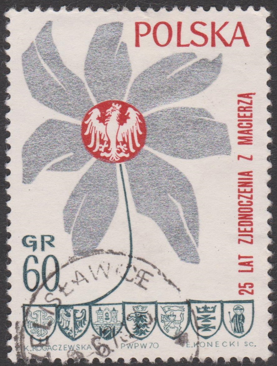 Polen MiNr. 2000 erschien am 09.05.1970 aus Anlass des 25. Jahrestages der Angliederung der Gebiete östlich von Oder und Neiße an Polen: