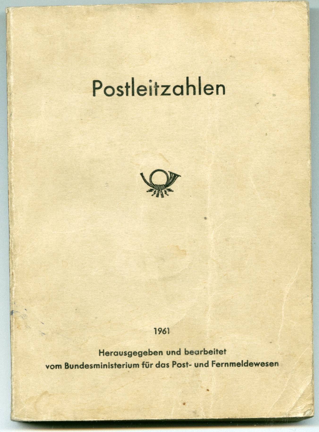 Ein Werk aus 1961: Die damals neu eingeführten Postleitzahlen, herausgegeben von der Deutsche Bundespost. Alle Orte sind nach dem ABC aufgelistet und man kann die seinerzeitige PLZ (1-4-stellig) ermitteln. Dieses Heftchen kann man ab und an für wenige € bei ebay finden. Es ist vor allem interessant für Stempel- und Belegesammler, die nach den alten Postleitzahlen sammeln.
