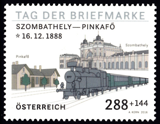 In Österreich ist zum Tag der Briefmarke 2016 am 21. Oktober 2016 diese Marke (MiNr 3294) erschienen. Sie zeigt Darstellungen zur Pinkatalbahn (Lokalbahn zwischen Szombathely und Pinkafeld; seit 1888): die Bahnhöfe Szombathely und Pinkafeld und eine Dampflokomotive der Baureihe 377.