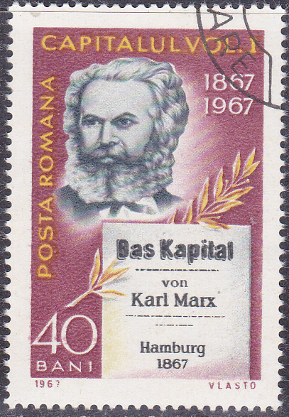 Zum 100. Jahrestag der Veröffentlichung des Buches "Das Kapital" von Karl Marx wurde in Rumänien diese Marke (MiNr 2629) mit einem Porträt von Karl Marx und dem Titel seines Buches "Das Kapital" verausgabt.