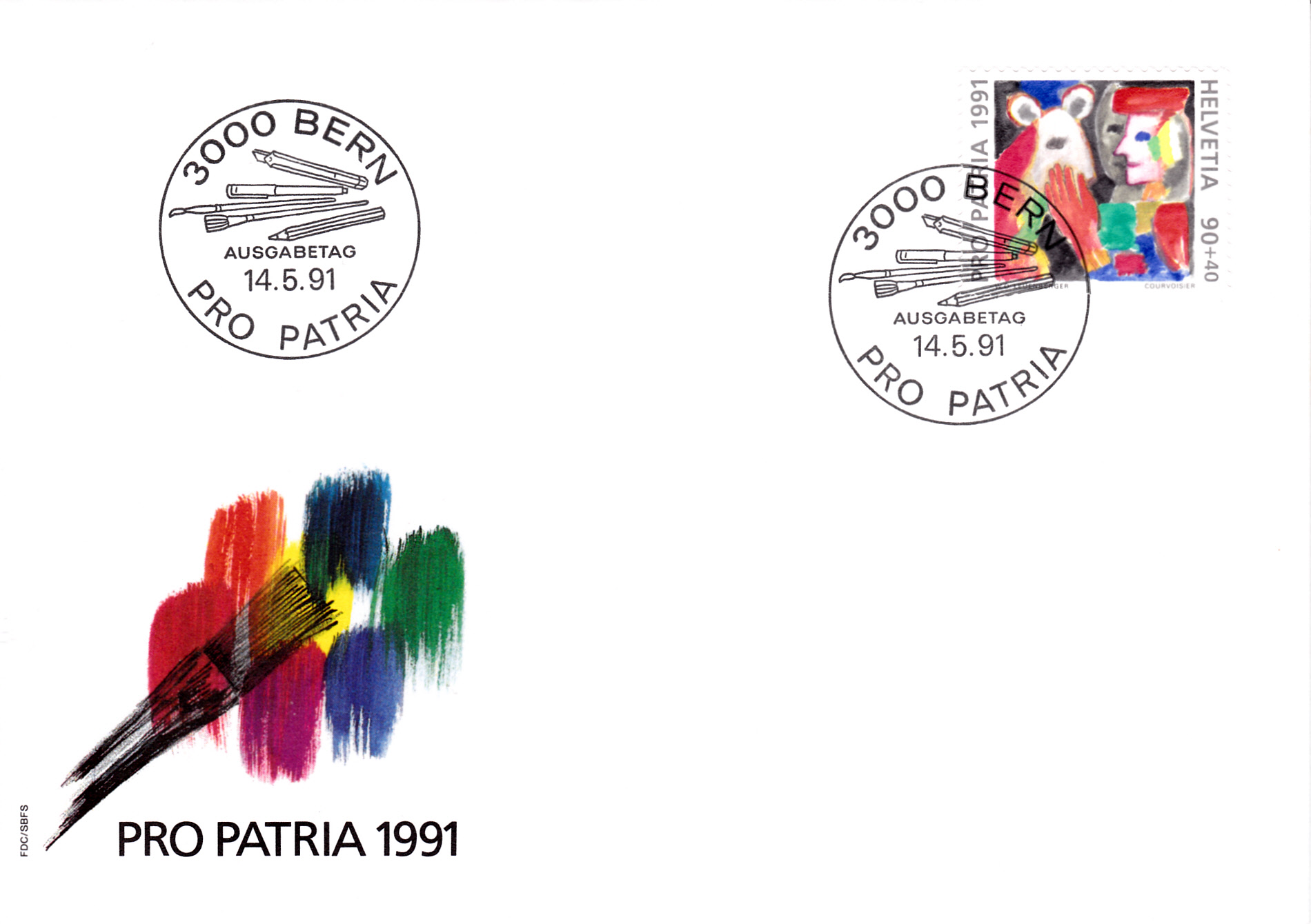 FDC mit der kompletten Serie "Pro Patria 1991" zum Thema "Zeitgenössische Kunst".