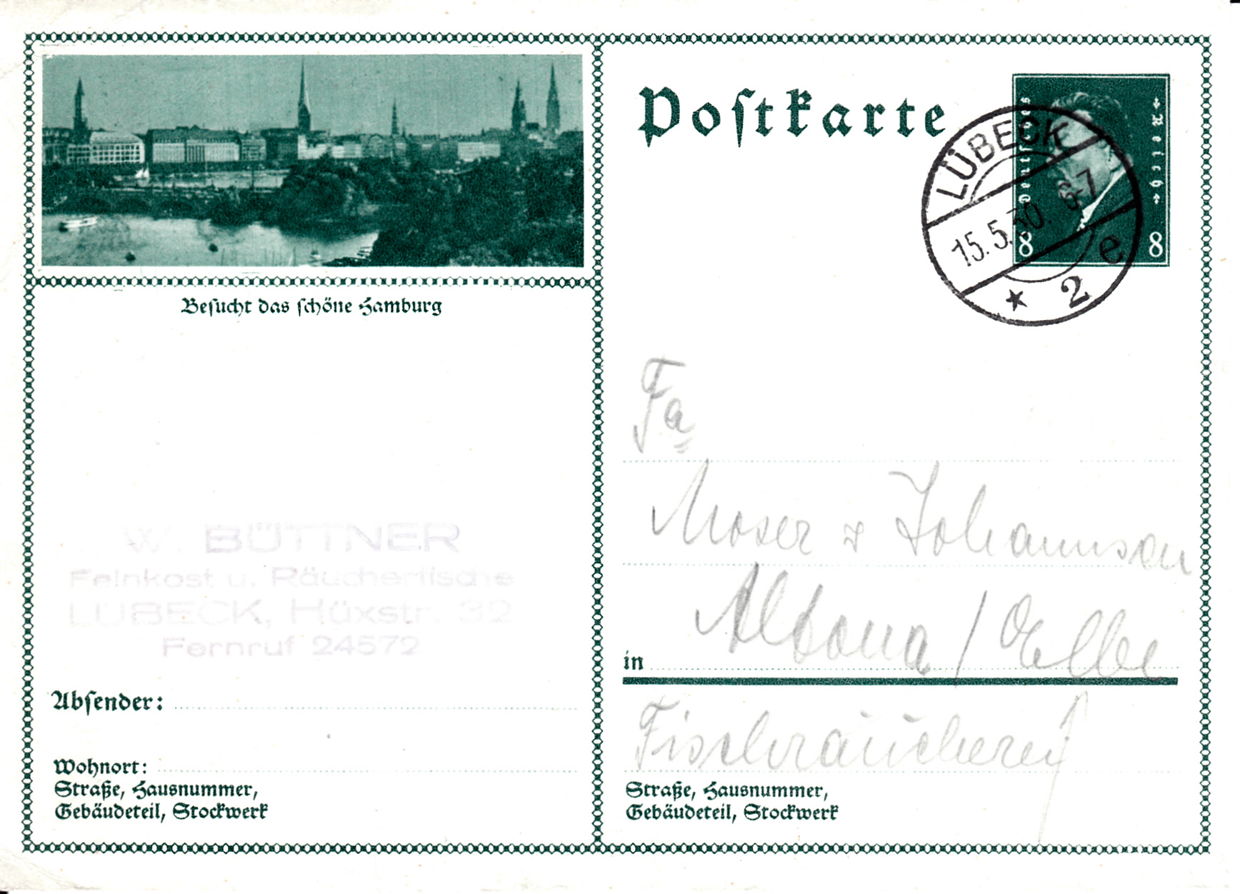 Auf dieser Karte (MiNr P 189/24) wird mit dem Foto aus Hamburg für einen Besuch der Stadt Hamburg geworben.
