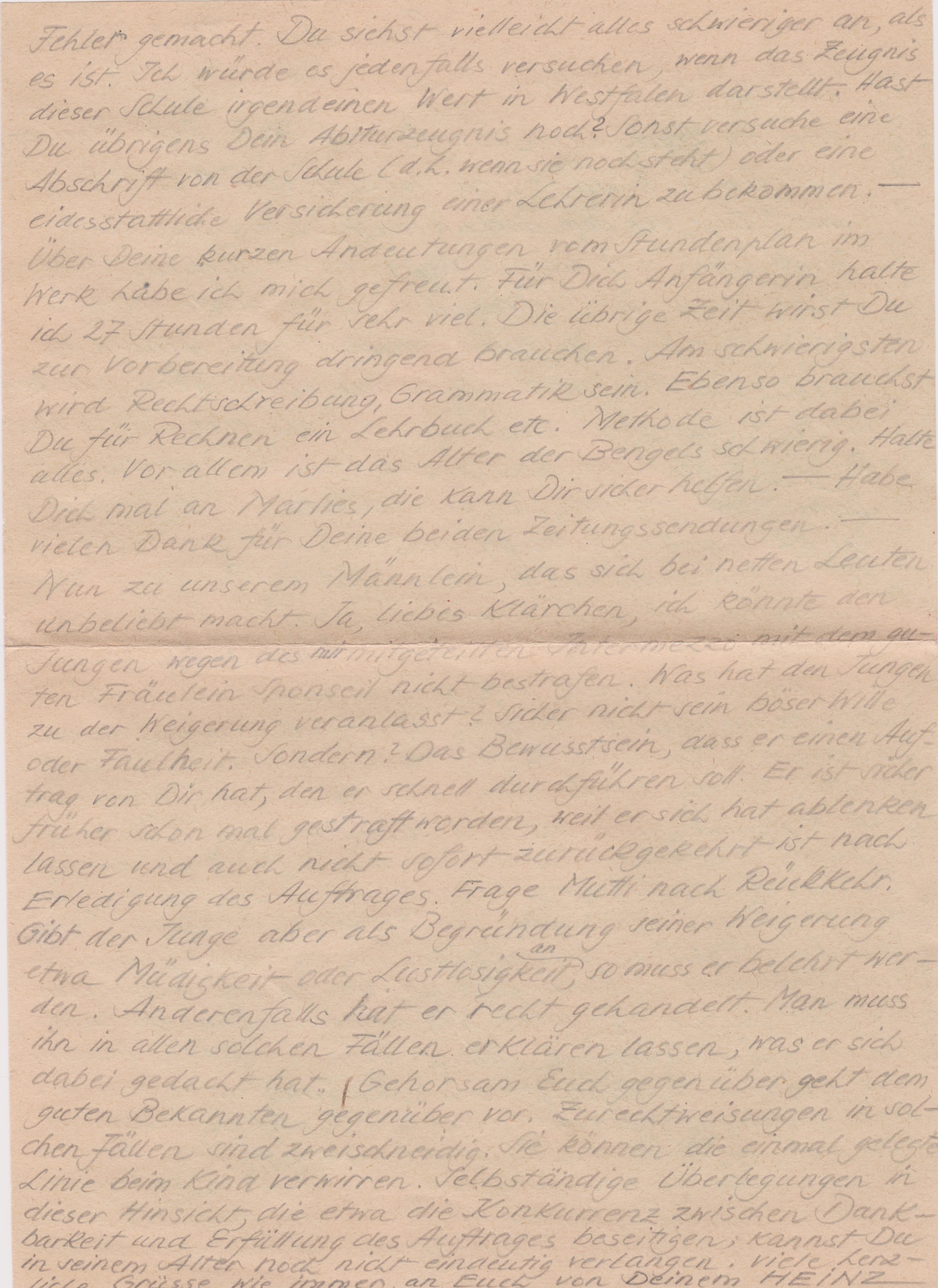 Am 11.08.1947 schrieb er diesen Brief an seine Frau Kläre: