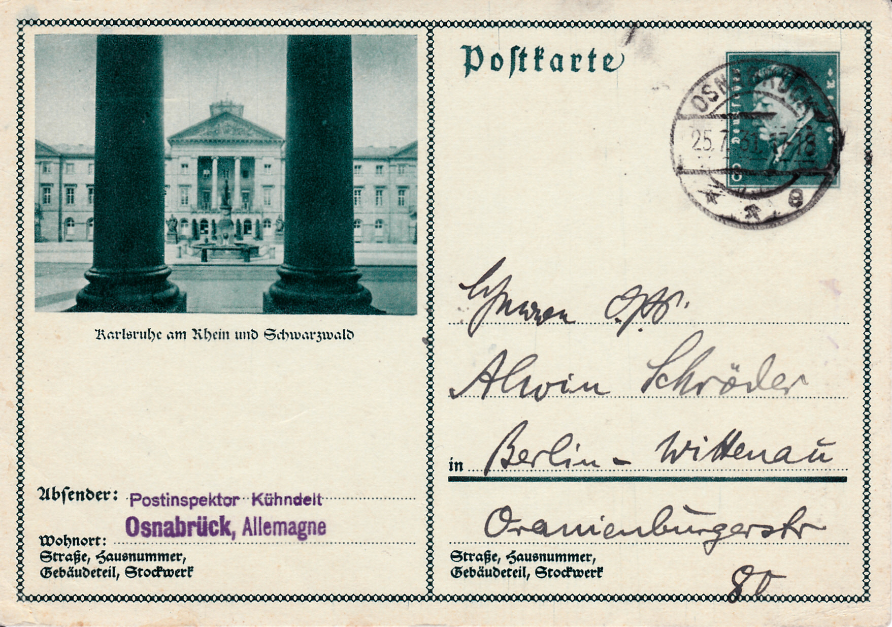 Auf dieser Bildpostkarte (MiNr P 191/17) sehen wir die Marienburg, eine im 13. Jahrhundert erbaute mittelalterliche Ordensburg des Deutschen Ordens am Fluss Nogat, einem Mündungsarm der Weichsel. Heute liegt sie in der polnischen Stadt Malbork (deutsch Marienburg).