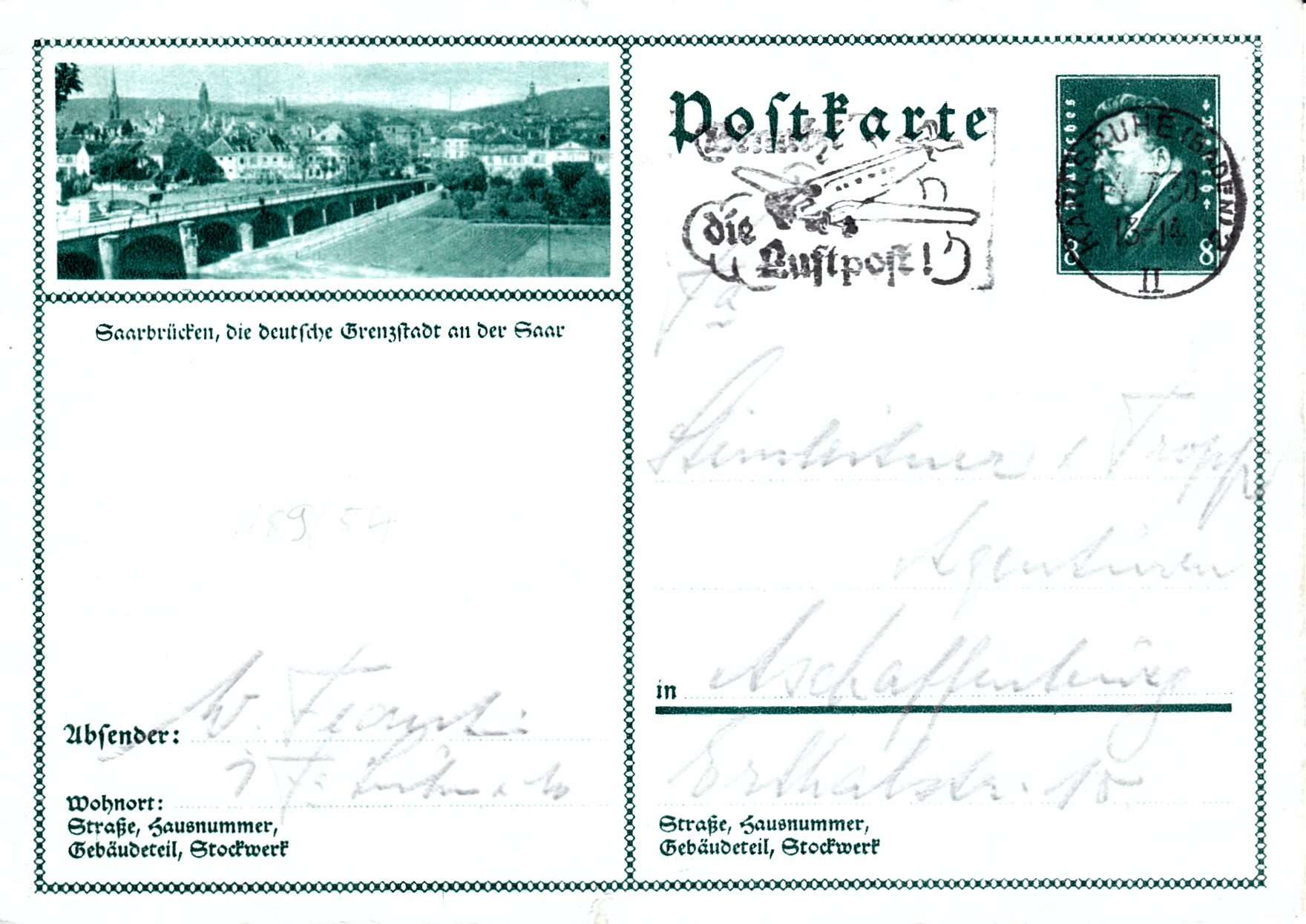 Diese Bildpostkarte (MiNr P 189/54) zeigt eine Fotographie aus Saarbrücken.