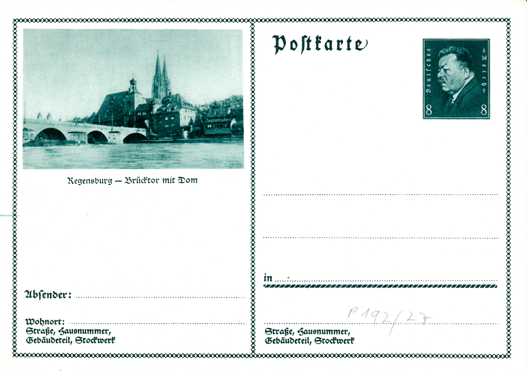 Auf dieser Karte (MiNr P 192/31) wird das Tannenberg-Denkmal gezeigt. Das Tannenberg-Denkmal (offiziell Tannenberg-Nationaldenkmal, ab 1935 Reichsehrenmal Tannenberg) wurde von 1924 bis 1927 bei Hohenstein in Ostpreußen, dem heutigen polnischen Olsztynek, errichtet. Es erinnerte an die Schlacht bei Tannenberg 1410 während der Litauerkriege des Deutschen Ordens, die Tannenbergschlacht im August 1914 und die Schlacht an den Masurischen Seen im September 1914. Die Anlage wurde von Pionieren der Wehrmacht im Januar 1945 vor der anrückenden Roten Armee gesprengt.
