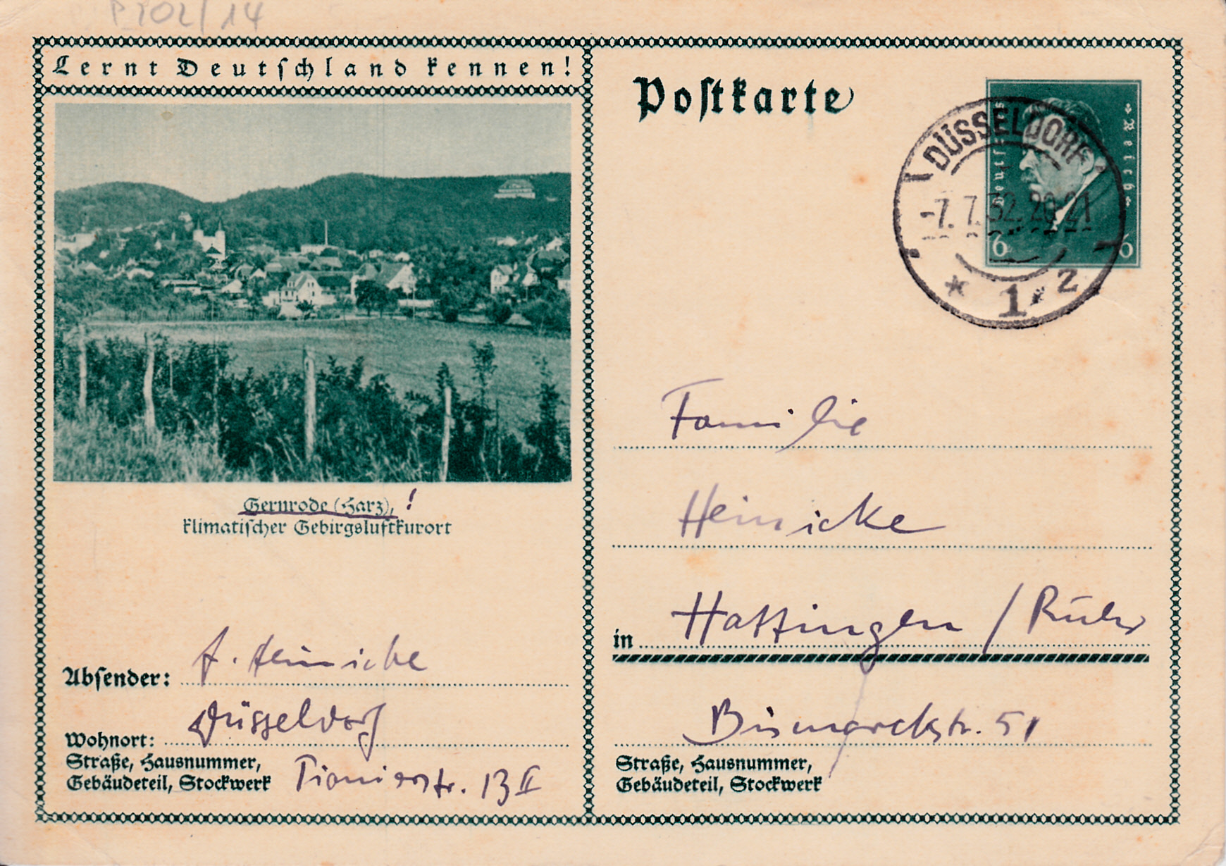 Es folgt die Bildpostkarte mit der MiNr P 202/14 und einer Ansicht von Gernrode im Harz.