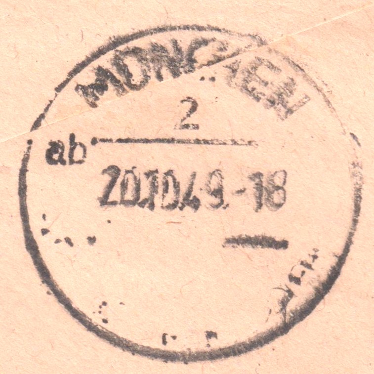 Als Aufgabestempel diente ein aptierter Tagesstempel MÜNCHEN 35 b, aus dem unten der ursprüngliche Text entfernt worden war: