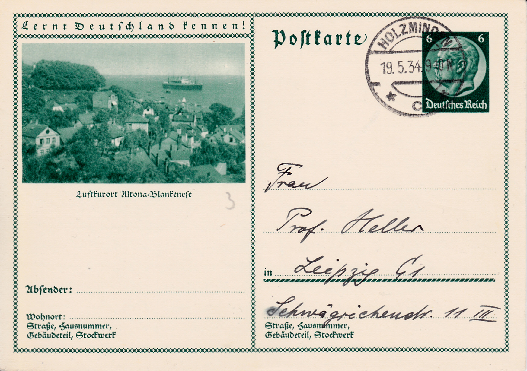 Diese Bildpostkarte (MiNr P 221/03) stellt den Luftkurort Altona-Blankenese vor. Im Jahre 1938 ist dieser Ort von Hamburg eingemeindet worden.
