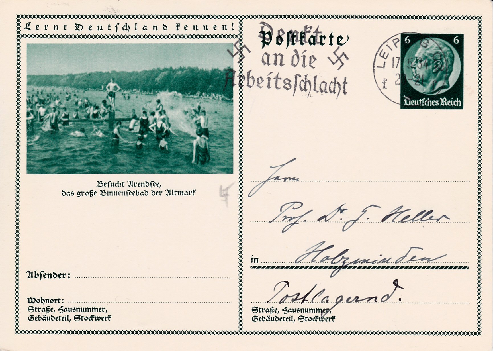 Auch in dieser Bildpostkartenserie gibt es eine Karte (MiNr P 221/04) mit einer Werbung zum Besuch von Arendsee. Gezeigt wird in diesem Jahr ein Foto mit dem Binnenseebad.