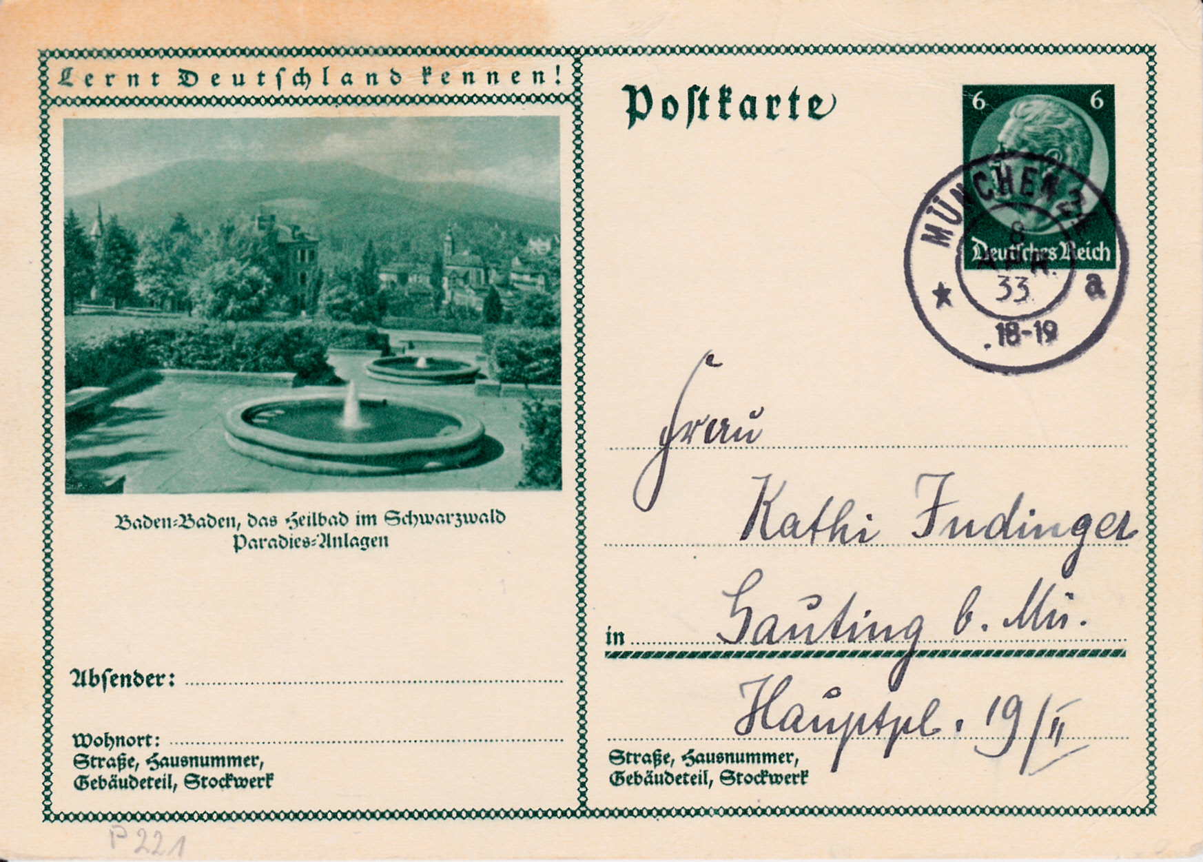 In dieser Kartenserie gibt es noch eine zweite Karte (MiNr P 221/09) mit einer Ansicht aus Baden-Baden.