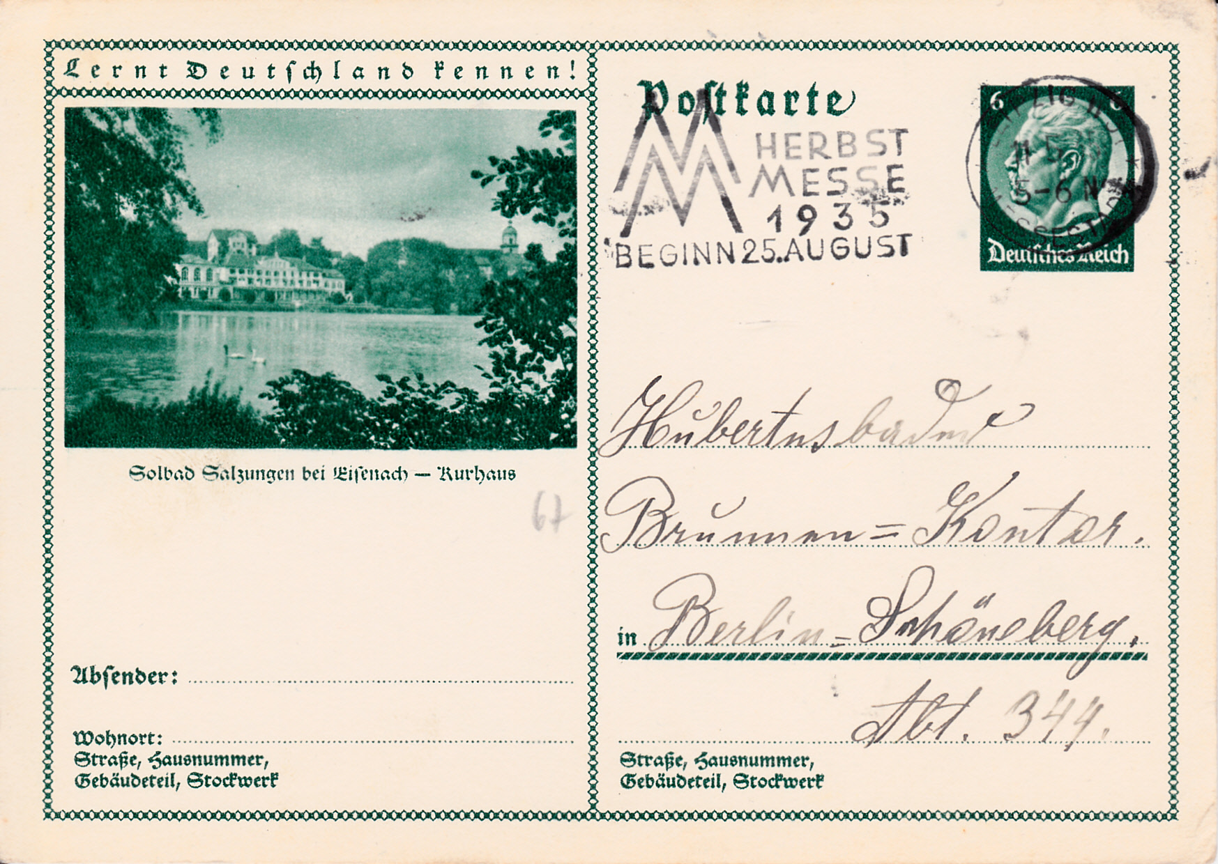 Auf dieser Karte (MiNr P 221/67) wird das Kurhaus von Bad Salzungen gezeigt.