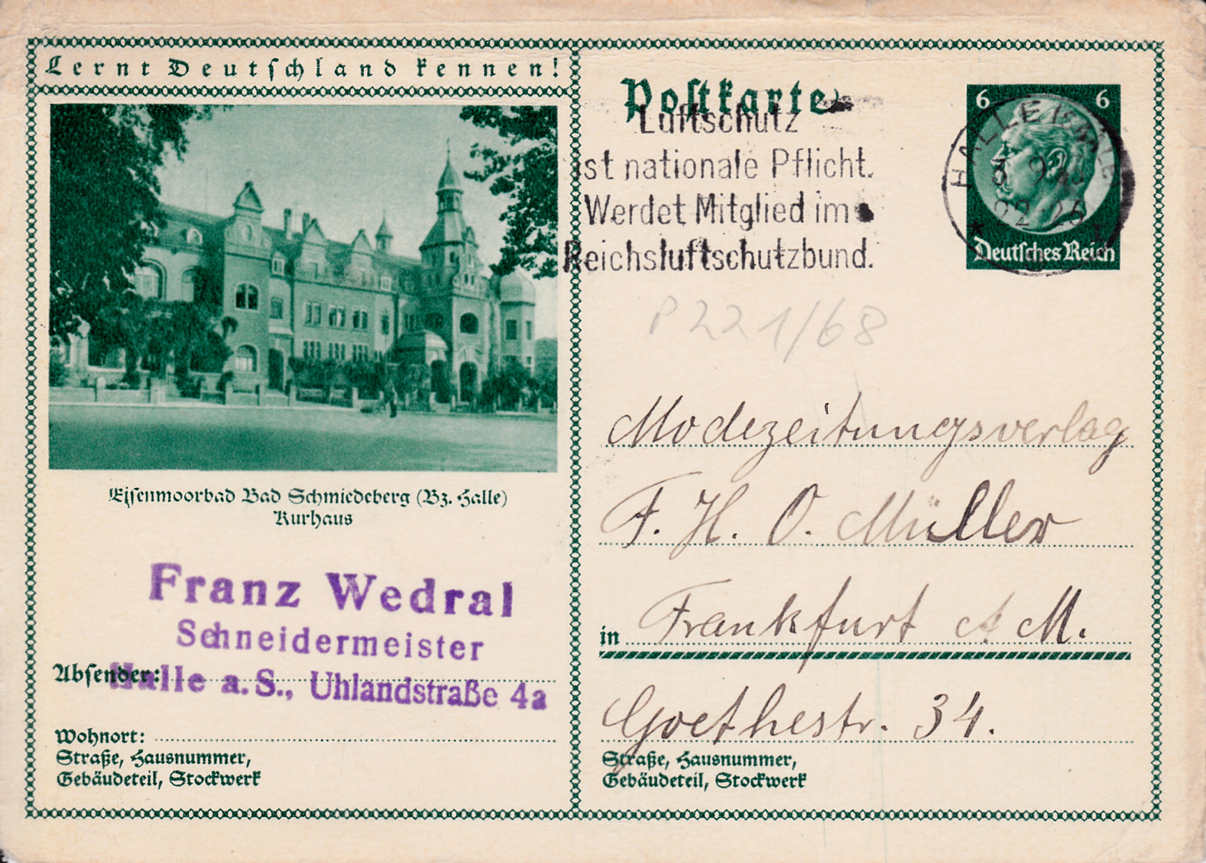 Es folgt eine Karte (MiNr P 221/69) mit dem Reichsdankhaus in Schneidemühl (heute Piła, eine Stadt in der polnischen Woiwodschaft Großpolen). Das Bild ist dem der Karte MiNr P 191/32 ähnlich.