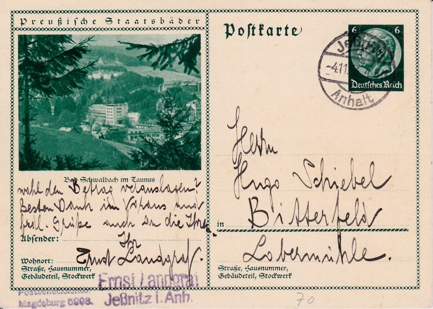 Einen Blick auf Bad Schwalbach im Taunus zeigt uns diese Karte (MiNr P 221/70).