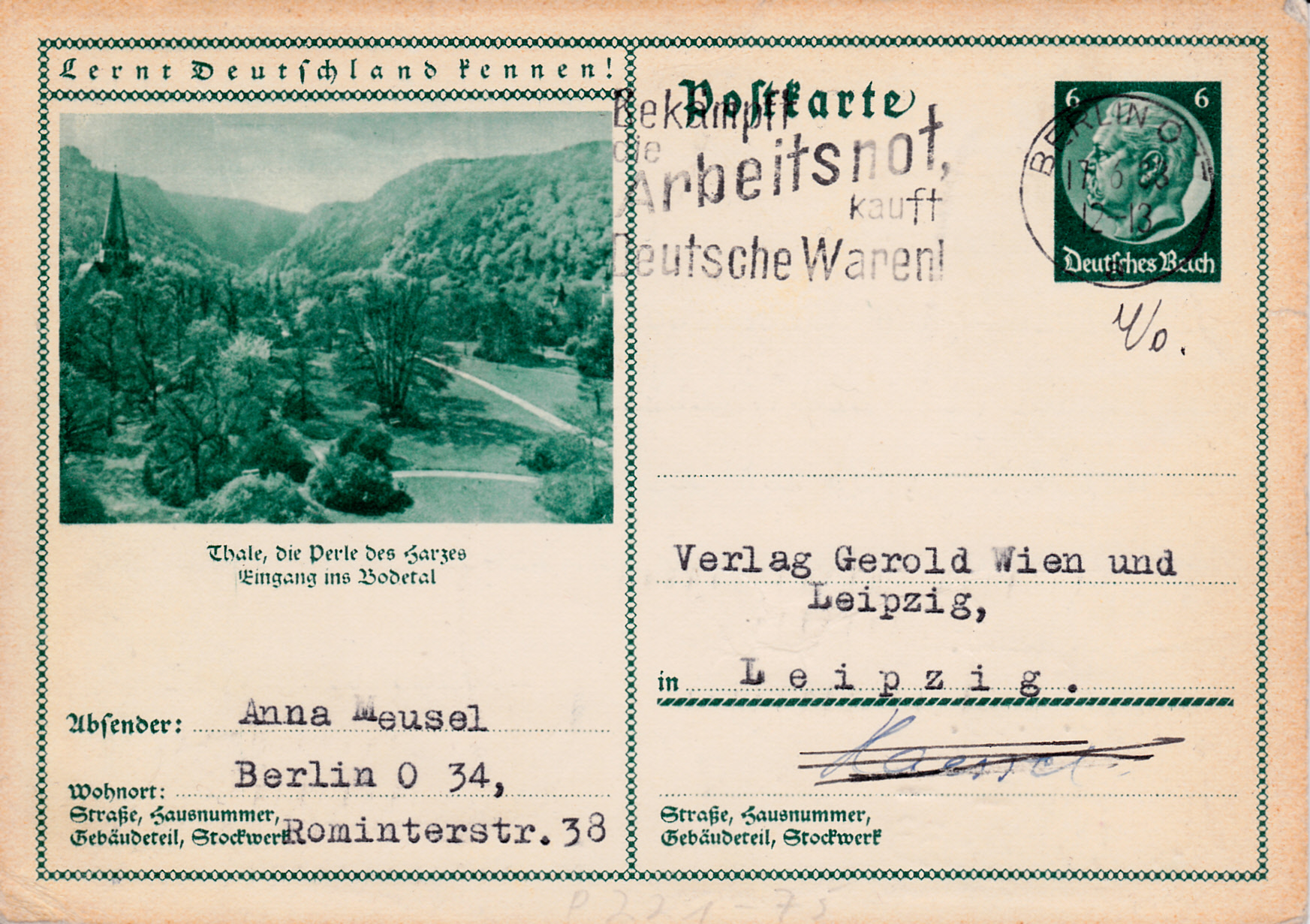 Die nächste Karte (MiNr P 221/75) bildet eine Landschaft aus dem Bodetal bei Thale im Harz ab.
