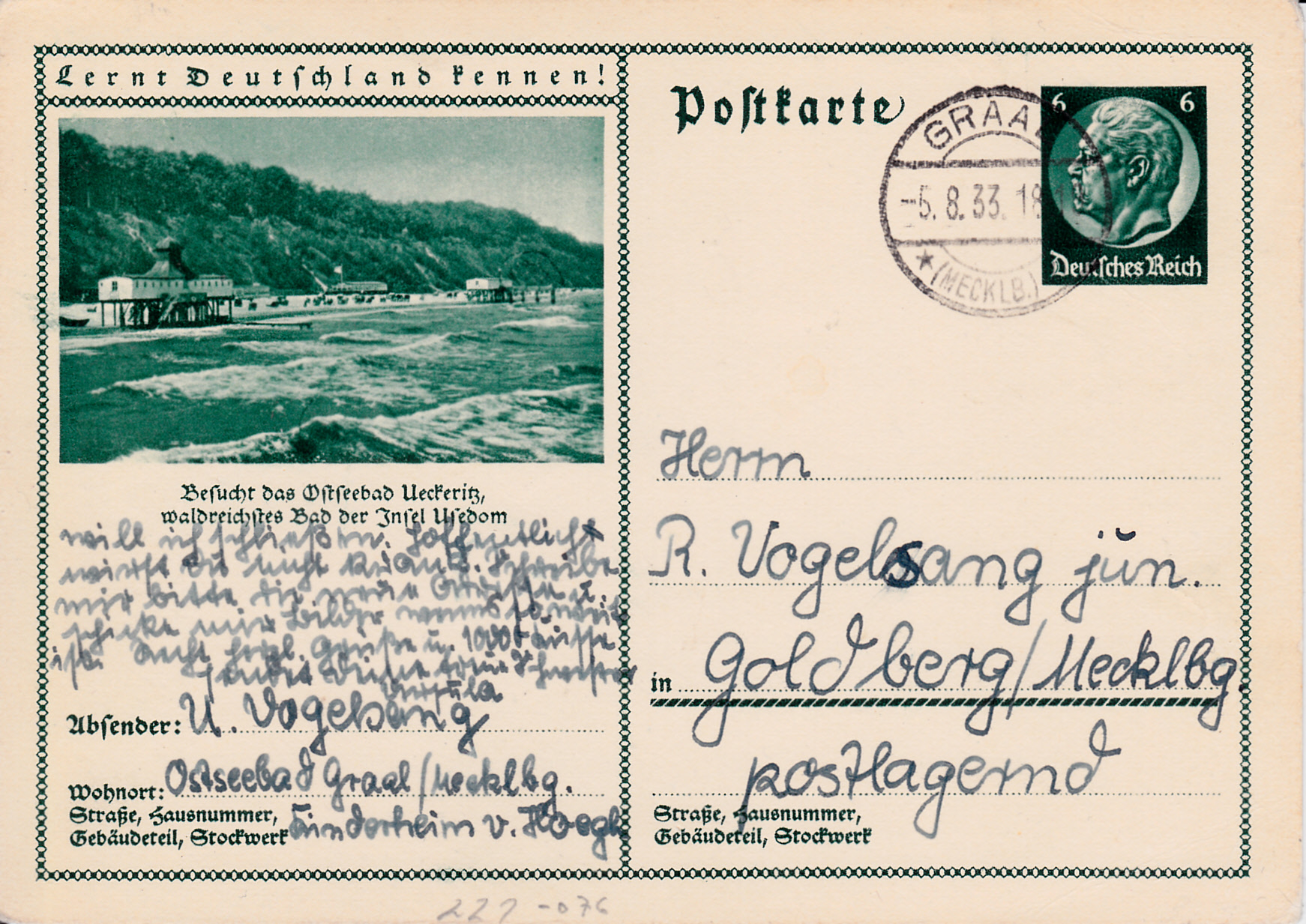 Es gibt auch im Jahre 1933 eine Bildpostkarte (MiNr P 221/77) mit der bereits aus den Vorjahren bekannten Ansicht aus Wittenberg.