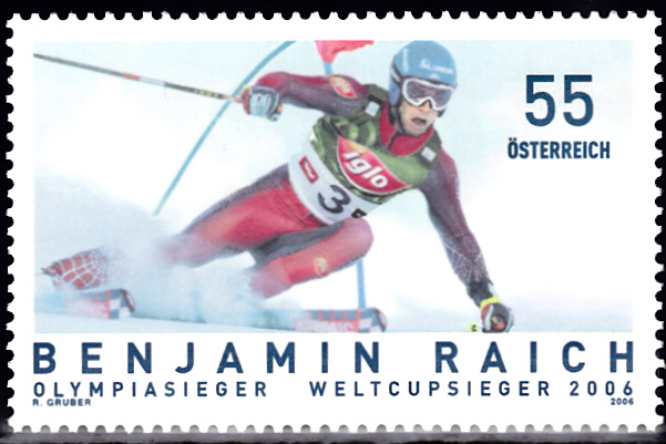 Diese Marke (MiNr 2616) aus Österreich zeigt Benjamin Raich.