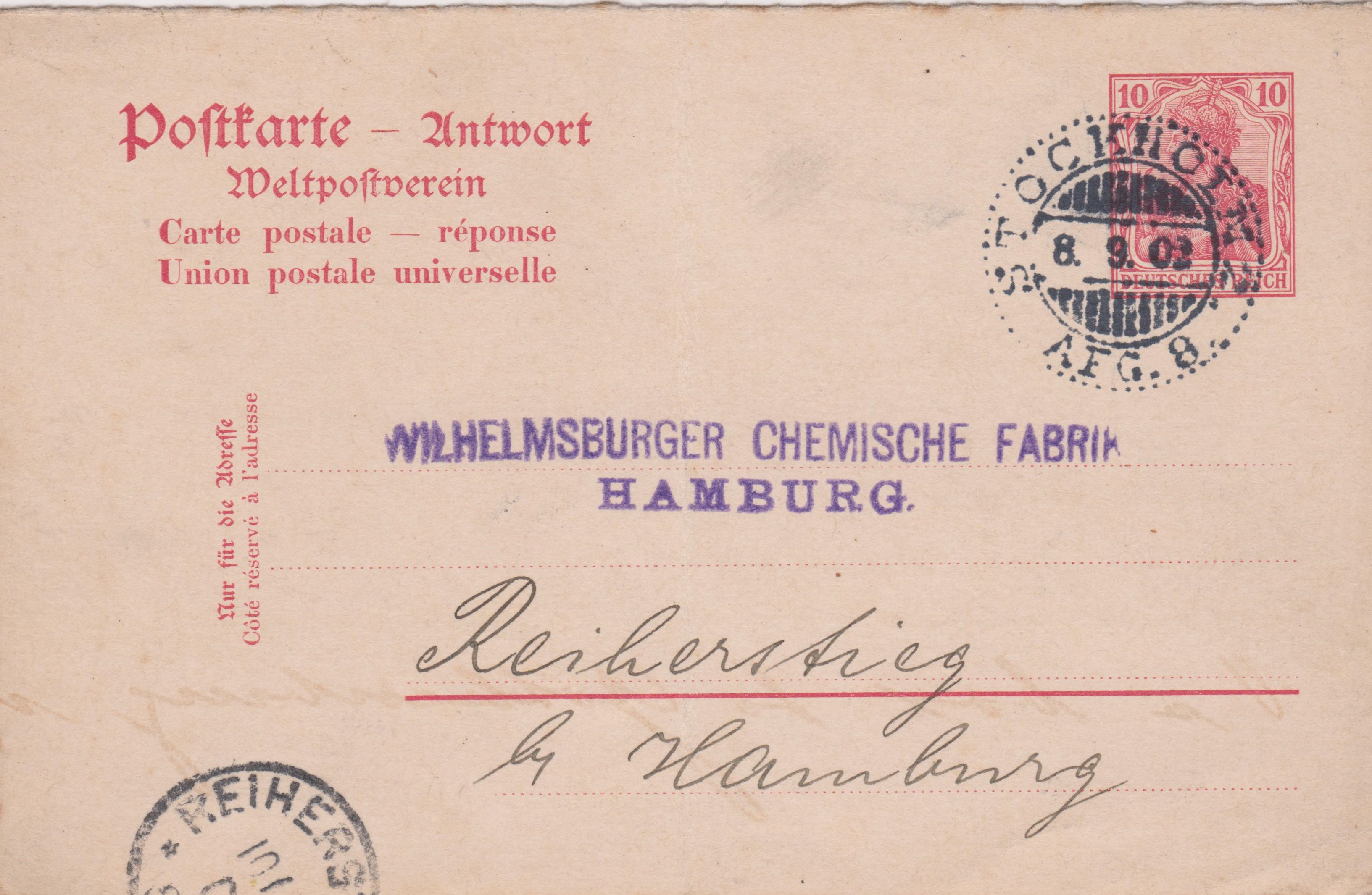 Antwortteil der Postkarte P 68 A, verwendet am 08.09.1902 in STOCKHOLM 2: