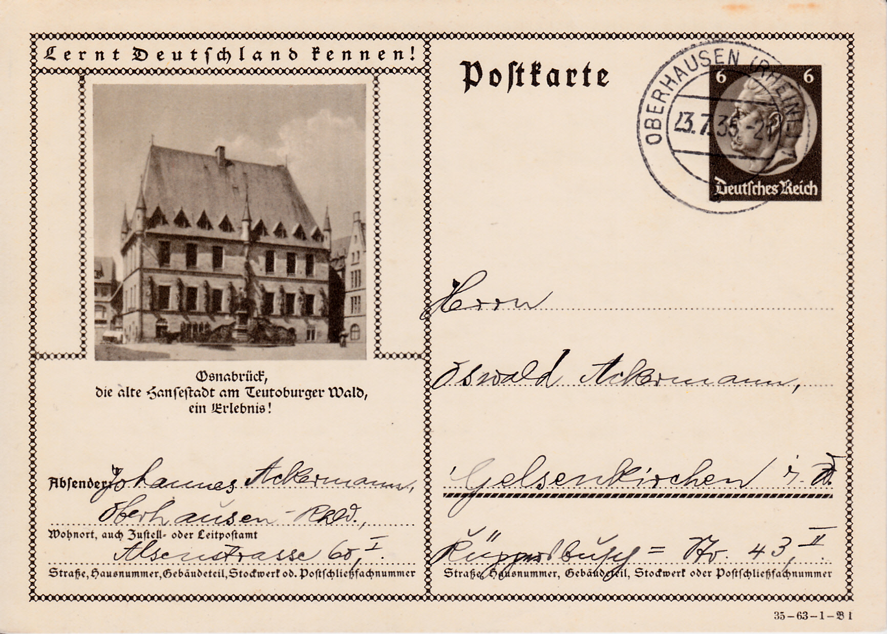 Auch in der nächsten Serie gibt es eine Karte (Serie 63 Bild 1) mit dem Rathaus in Osnabrück.