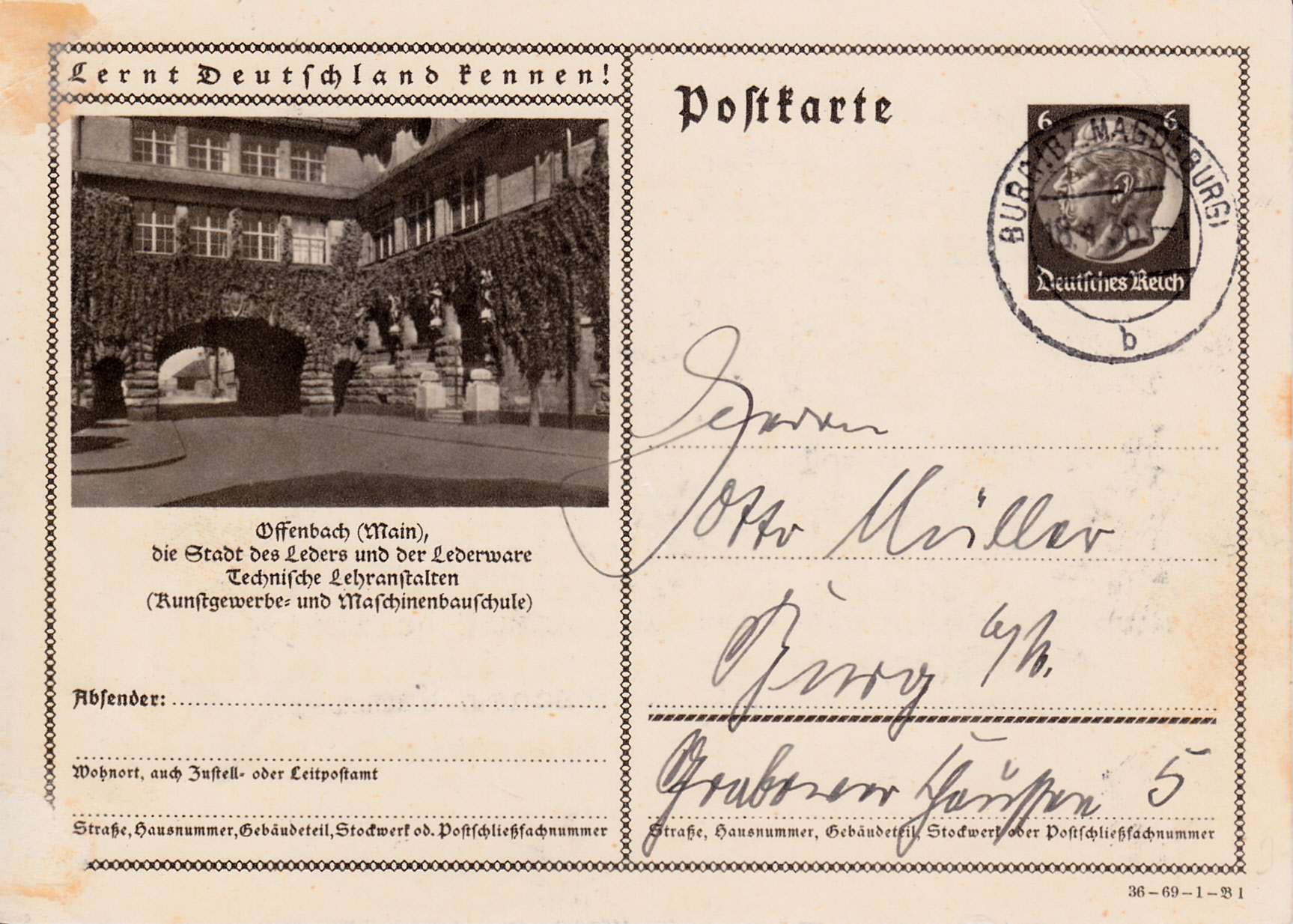 Auch auf der nächsten Karte (Serie 69 Bild 1) wird ein bereits aus der Serie 1935 bekanntes Bild (Serie 64 Bild 8) aus Offenbach am Main verwendet.