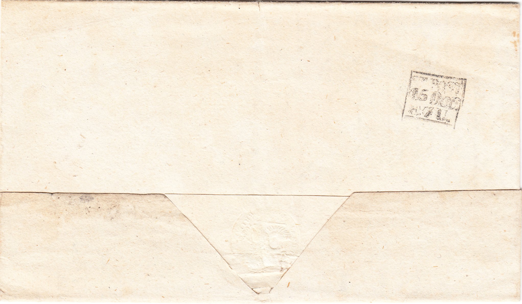 Rückseitig findet sich ein Stadtpost-Rahmenstempel aus Dresden vom 15.12.1849.