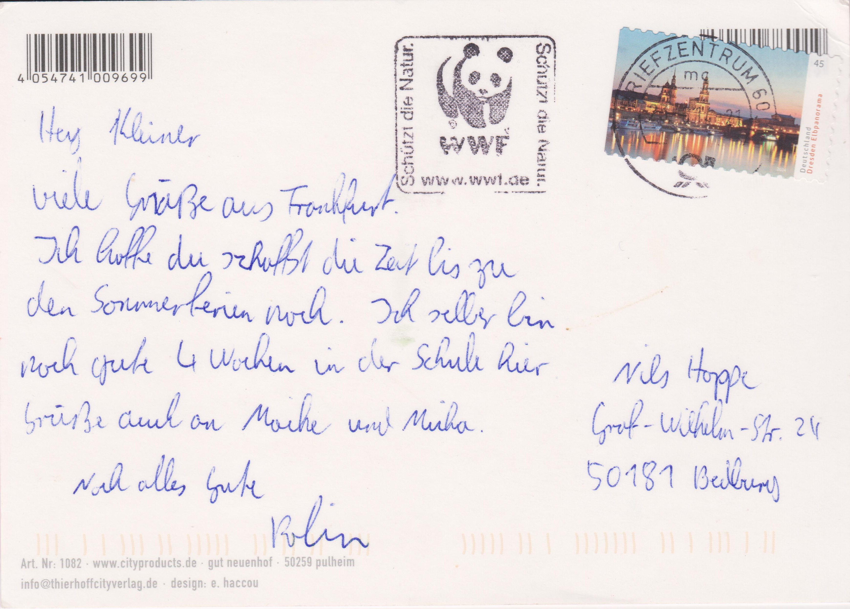 Die bereits hier vorgestellt Marke der Postverwaltung der Vereinten Nationen in Wien mit dem Brillenbär (Tremarctos ornatus) wurde hier auf einem Brief zur 57. Sonderballonpost der Pro Juventute als Frankatur verwendet.