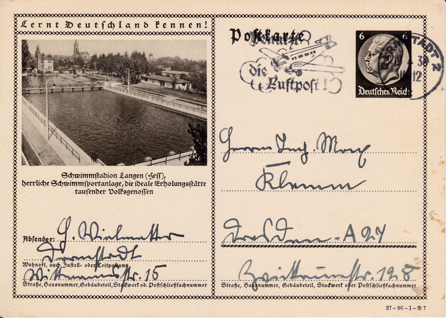 Das Schwimmstadion in Langen (Hessen) sehen wir auf dieser Karte (Serie 96 Bild7).