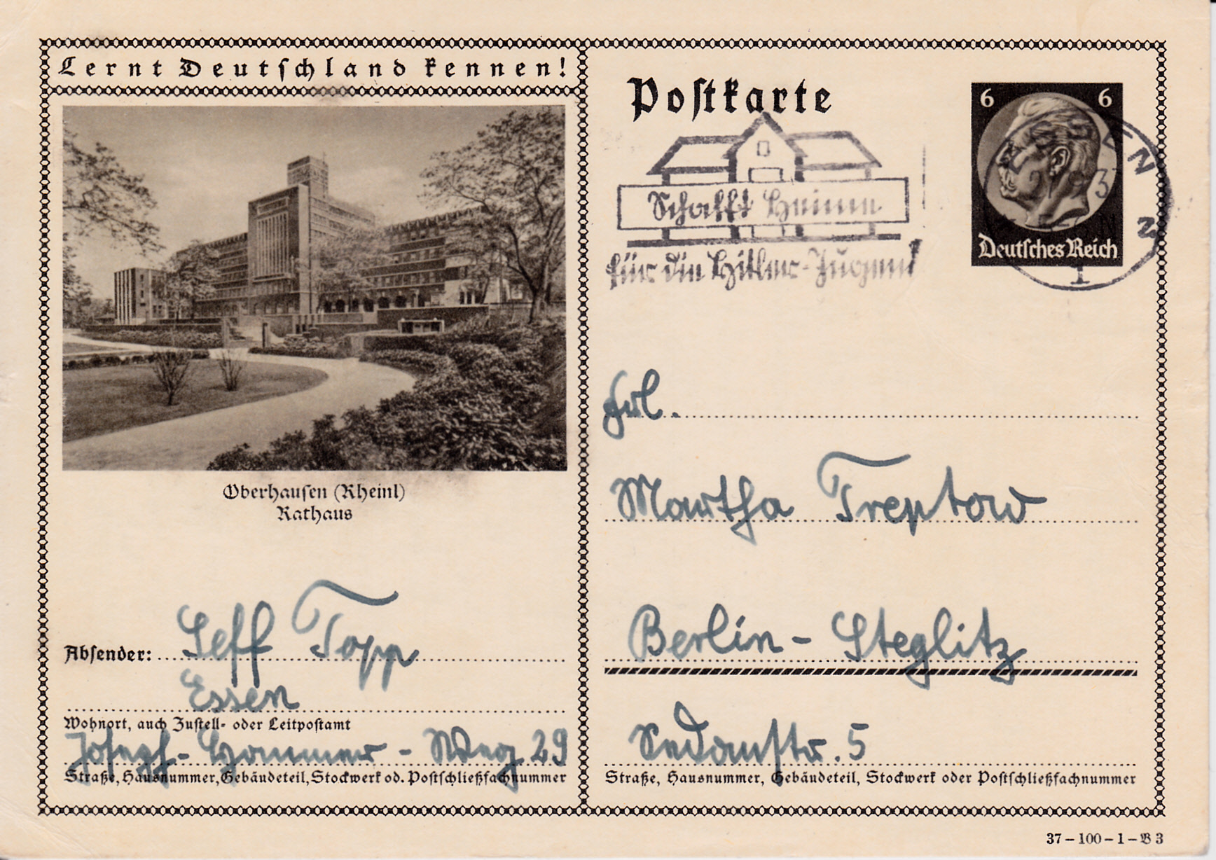 Tangermünde an der Elbe wirbt mit dieser Karte (Serie 99 Bild 6) für den Besuch der mittelalterlichen Stadt mit seinen Backsteinbauten und seiner Burganlage.